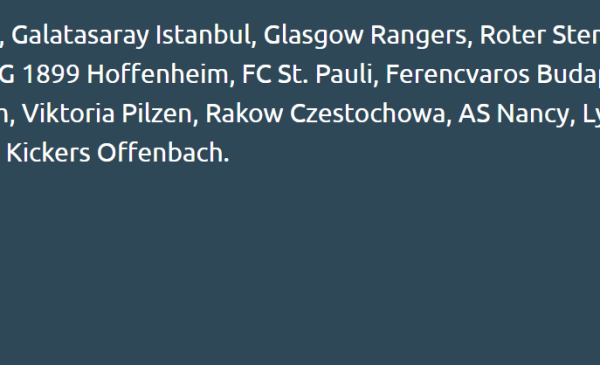 Katılacak Takımlardan Bazıları: Fenerbahce Istanbul, Galatasaray Istanbul, Glasgow Rangers, Roter Stern Belgrad, PAOK Saloniki, Hajduk Split, Deportivo La Coruna, TSG 1899 Hoffenheim, FC St. Pauli, Ferencvaros Budapest, FC Basel
